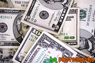 #676 — A close up picture taken of a bunch of money bills include twenty dollar, ten dollar, five dollar, and one dollar bills.