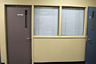 #1907 — A close up picture taken of an office room from the outside. The word "Office" is written on the door to the room.