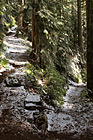 #1758 — A scenic vertical picture taken of a switchback point in a hiking trail. This trail was located in the Mt. Rainier National Park near Eunice Lake.