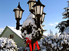 #58 — A scenic photo taken close up of a wreath covered in white snow. Christmas is in the air. This photo was taken during the winter season as Christmas was getting closer. People were decorating their houses along with street poles to make the season more jolly.