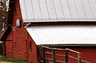#1004 — A scenic picture taken of the side of a red barn located on a farm in Enumclaw, Washington. This photograph was taken on a cloudy day.