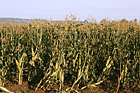 #1370 — A scenic picture taken of rows of corn stalk crop located on a farm field on a sunny autumn morning.