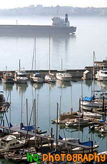 #603 — A scenic picture taken of a the Balclutha boat on a blue sky sunny day located in the San Francisco, California bay. In the background you can see Coit Tower sitting on Telegraph Hill. The overall length of The Balclutha is 301 feet, length of deck is 256.5 feet, the beam is 38.6 feet, the depth is 22.7 feet, the gross tonnage is 1689, and the height of teh mainmast is 145 feet. On January 15, 1887, with a twenty-six-man crew, Balclutha sailed under British registry from Cardiff, Wales, on her maiden voyage towards San Francisco. The ship entered the San Francisco Golden Gate after 140 days at sea, unloaded cargo of 2,650 tons of coal, and took on sacks of California wheat. Besides sailing to San Francisco, in 1899 The Balclutha for three years sailed north to the Puget Sound, Washington and then across Austrailia.