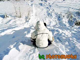 This picture captured a sledder making their way down a steep hill on an inner tube at Snoqualmie, Washington. This day there was a huge snow storm at Snoqualmie accumulating probably over a foot of snow. This sledder and friends hiked into the wilderness at Snoqualmie and built their own sledding hill to make it more thrilling!